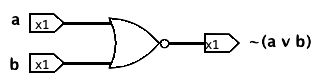 ~(a ⋁ b) ≡ (~a ⋀ ~b)