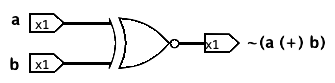 When representing the XNOR operator in a circuit, we use the following gate (note the small circle added to the XOR gate):