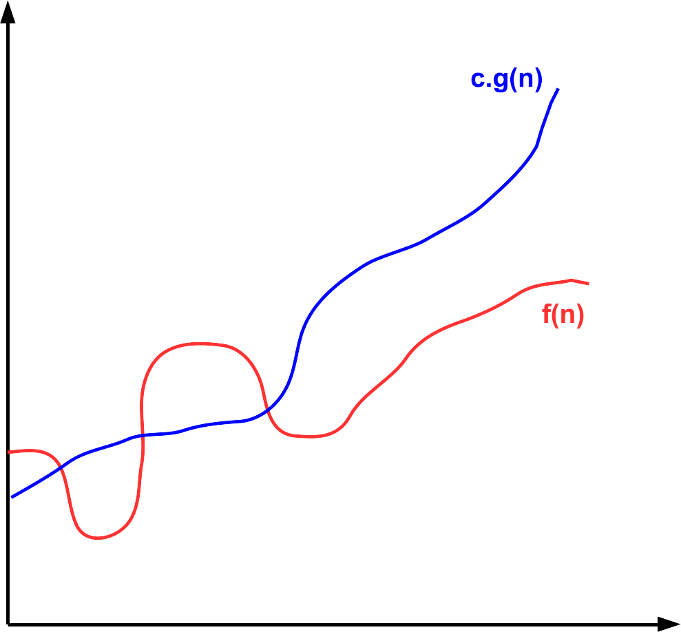 ∃c ∈ ℝ+, ∃n0 ∈ ℕ, ∀n ∈ ℕ, n ≥ n0 → f(n) ≤ c · g(n)