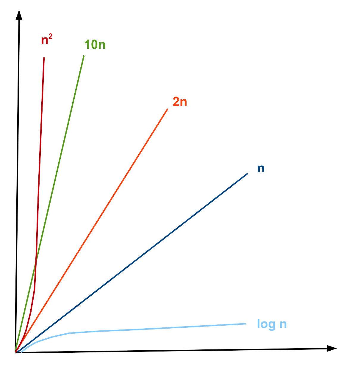 | O(1) < O(log n) < O(n) < O(n log n) < O(n2) < O(2n) < O(n!) |