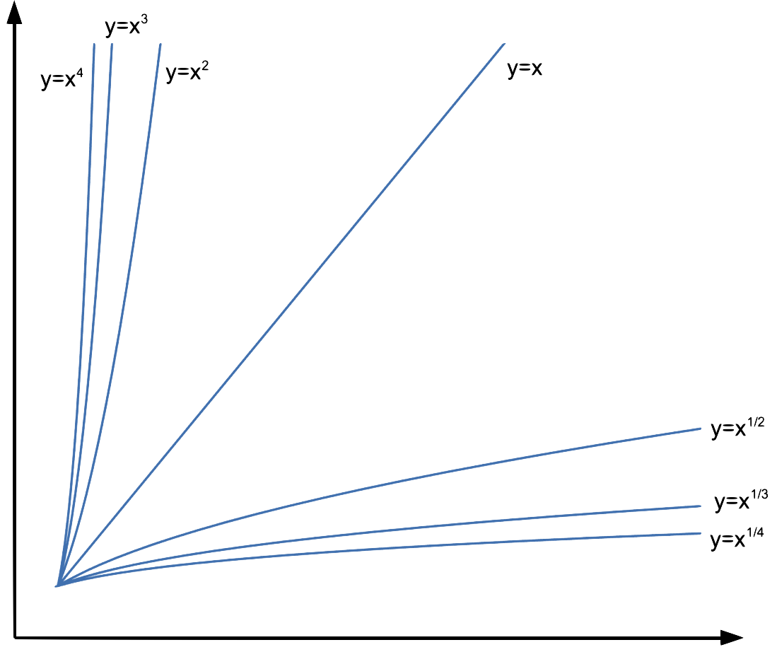 When comparing two power functions, look only at their exponents. For example: n3 grows faster than n2, so n2 ∈ O(n3). So if r < s, then xr ∈ O(xs).